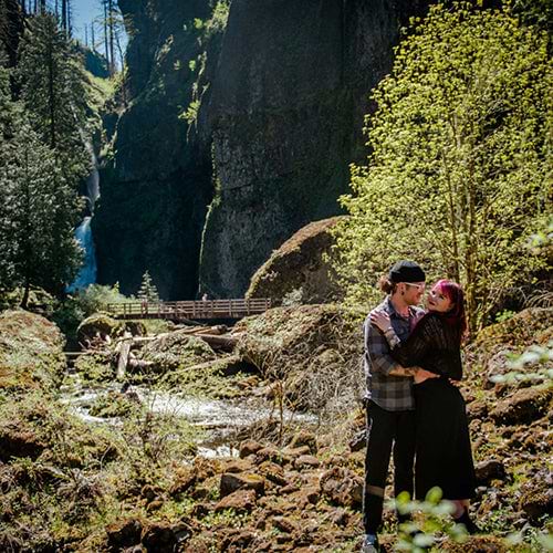 The couple reside in Texas, but Austin was born and raised in Portland, Oregon, and he turned to the scenic beauty of the Pacific Northwest to propose under a waterfall in the Gorge.