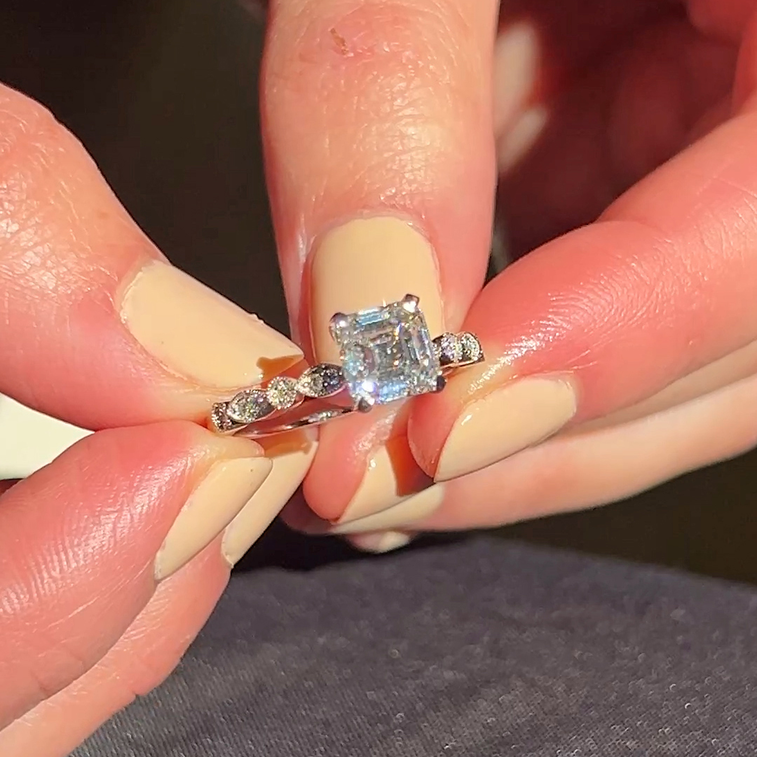 Asscher cut diamonds highlight clarity and depth through large facets and open tables, offering a unique, captivating glow rather than fiery brilliance. MiaDonna’s lab grown Asscher diamonds are carefully selected for exceptional clarity and ethical sourcing, ensuring beauty without compromise. Especially striking in minimalist or vintage settings, Asscher cuts appeal to those who value clean elegance and transparency—in both design and sourcing—making them a refined and responsible choice.