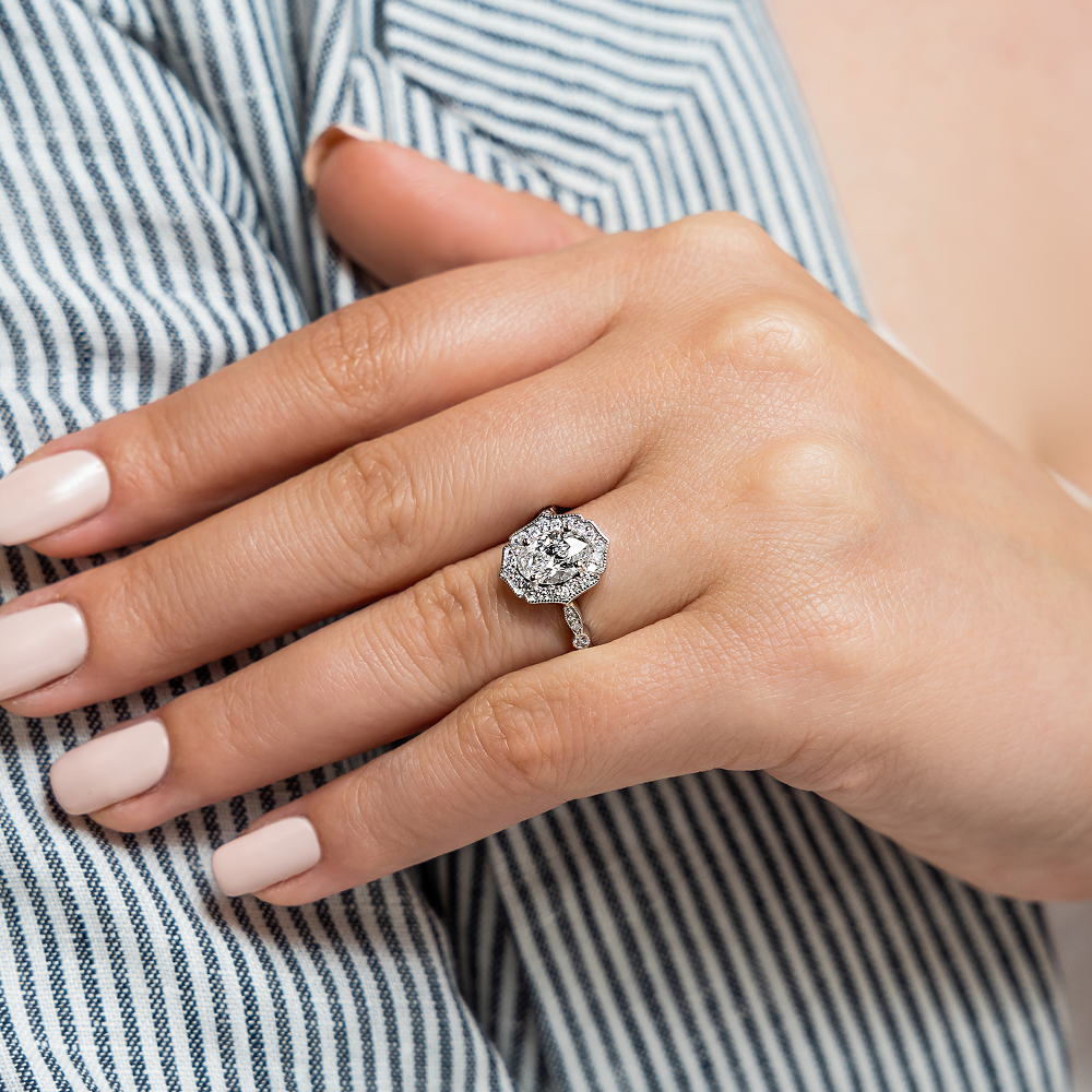 For an active lifestyle, we recommend focusing on vintage-inspired designs with lower profiles and more substantial settings – styles that carry the character of the era without sacrificing durability. Our team is happy to help you find a ring that balances both.