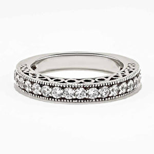 This Ready-to-Ship Ali Stackable Band is set with 0.47ctw round cut Recycled Diamonds in Platinum, size 6.5 (any other size selected will require resizing). All Ready-to-Ship items are available for return/exchange as long as they are not resized or altered in any way. This ring can be sized 5.75, 6, 6.25, 6.75, 7, and 7.25. Please allow 4 business days for resizing.