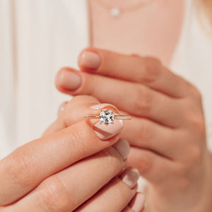 The Ariel Engagement Ring is a beautiful hidden halo ring with 0.06ctw of Lab Grown Diamonds. Features a scroll design to under gallery and holds the center stone of your choice in an 8 prong head. Starting price is for setting only.