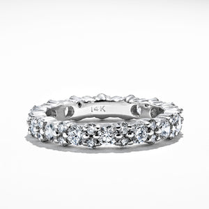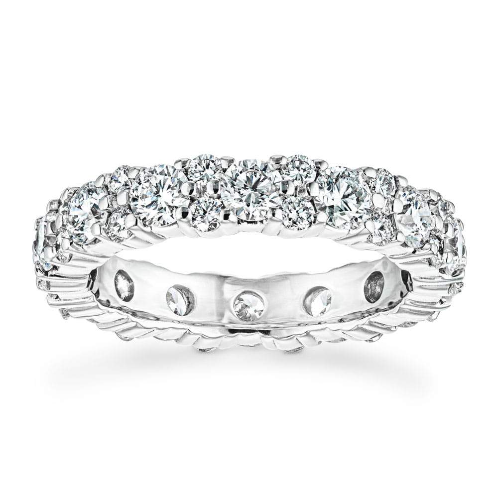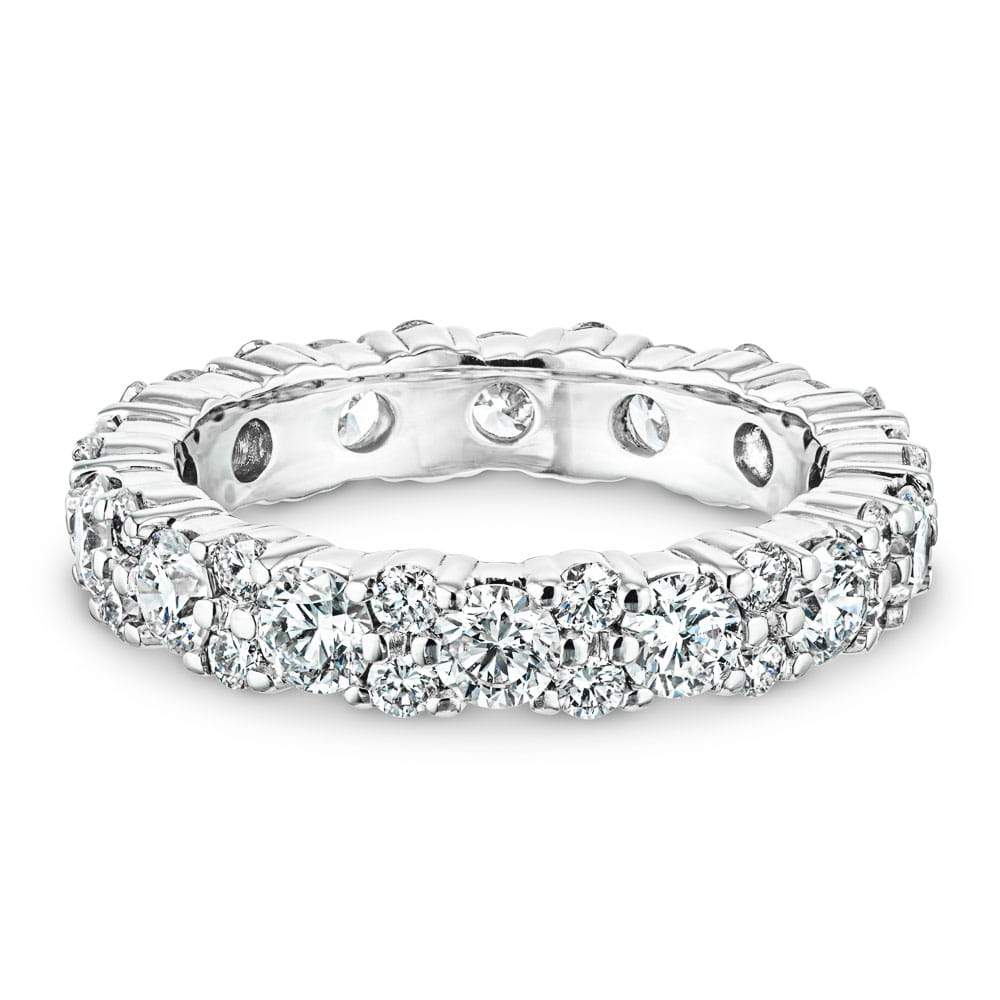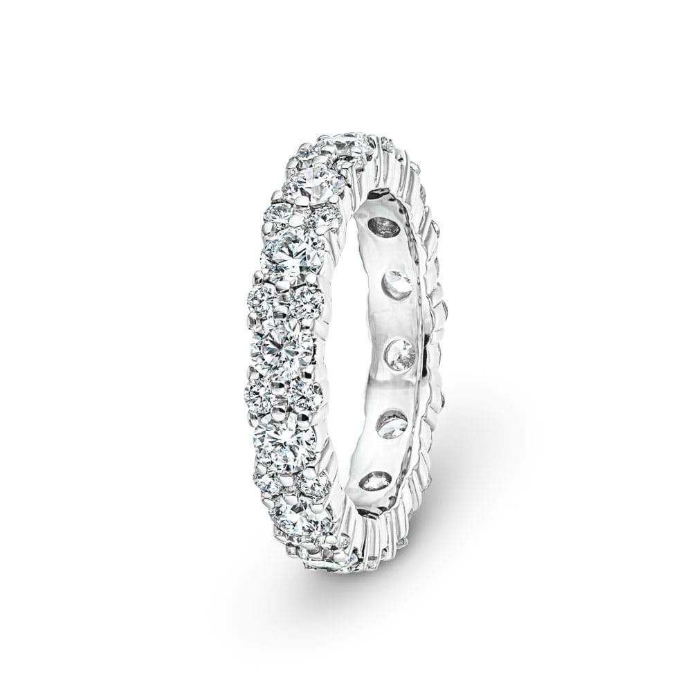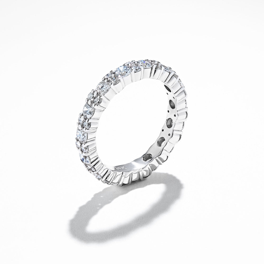 The Cluster Eternity Band is set with 2.0ctw G/H color, SI clarity Lab Grown Diamonds alternating in size all the way around the shank. Full eternity rings look beautiful when worn alone or paired with other styles.