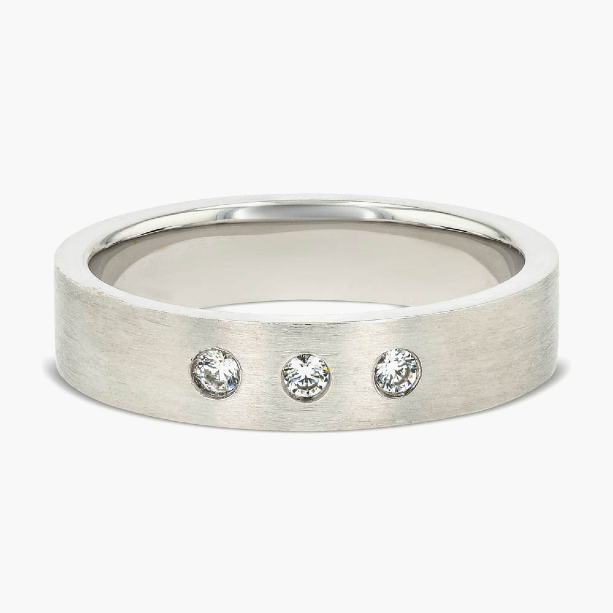This Wide Artisan Band is accented with Lab Grown Diamonds in the metal and finish of your choice. Whether you prefer the warm glow of 14K yellow gold or the classic allure of 14K white gold, it looks great when worn alone or when stacked with one of our Artisan Engagement Rings. Add dimension to your stack with a satin hammered finish, or opt for the timeless satin finish. These unique bands are designed as unisex wedding bands that can stack with all pieces in the Artisan Collection.