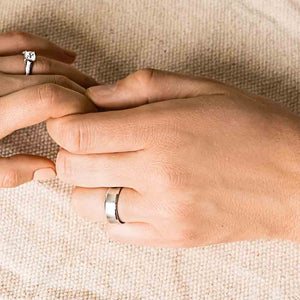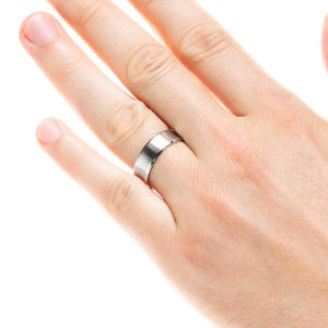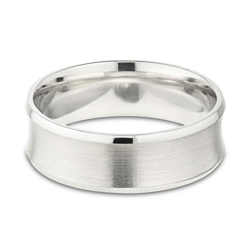 Our Dune Mens Wedding Band features a 6mm band with an understated concave design and makes for a powerful statement. This band features round polished edges that stand out against a satin finish center.