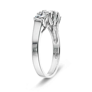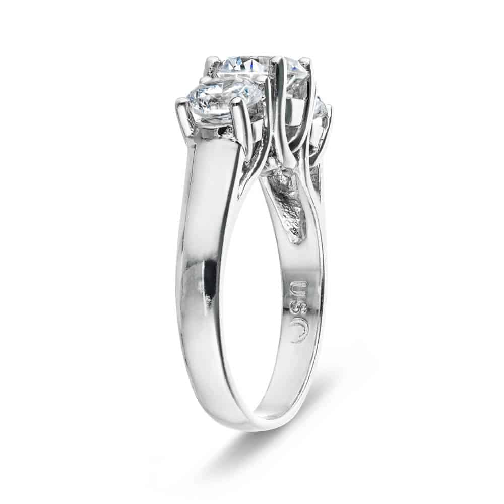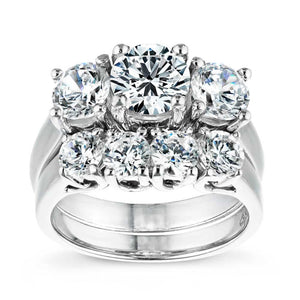 The Ellise is one of our most popular Three Stone wedding sets. The Engagement Ring comes with your choice of center and side stones, while the matching Wedding Band is set with 0.25ct Round Cut Lab Grown Diamonds in a trellis basket which is both a stylish and secure style of setting. Starting price is for setting only.