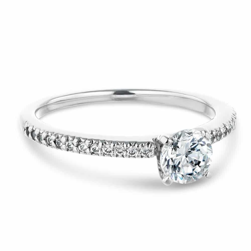 The Hope is a delicate Accented Wedding Set with petite prong set Lab Grown Diamonds going approx. half way down the delicate shank on both the Engagement Ring and matching Wedding Band. Starting price is for setting only.