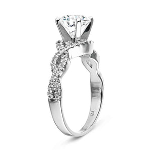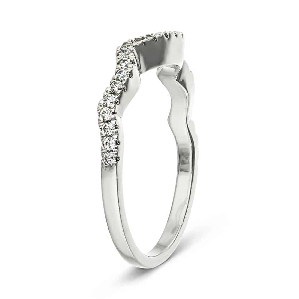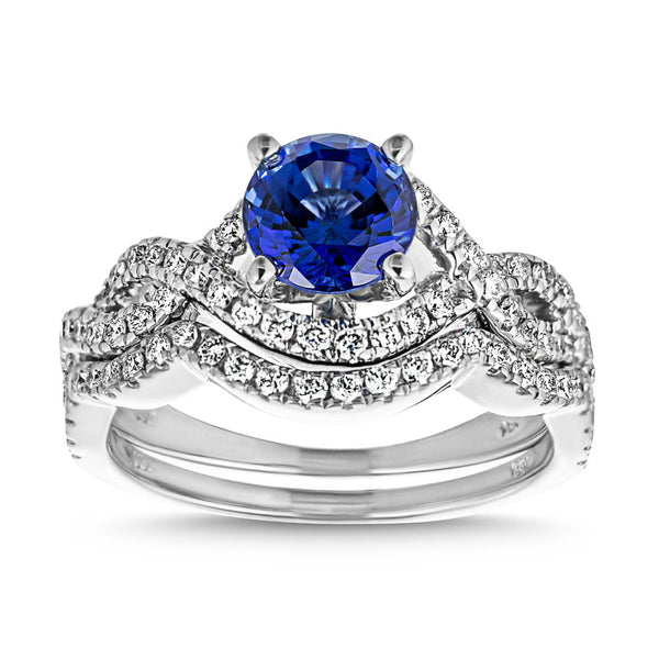 The beautiful Brianna Wedding Set comes with both the engagement ring and matching diamond accented wedding band. The Brianna Engagement Ring features a unique halo and twisted shank design, accented with prong set Lab Grown Diamonds. The Wedding Band is the exact match to the engagement ring, contouring to follow the lines of the engagement ring for a perfect puzzle fit. Starting price is for setting only.