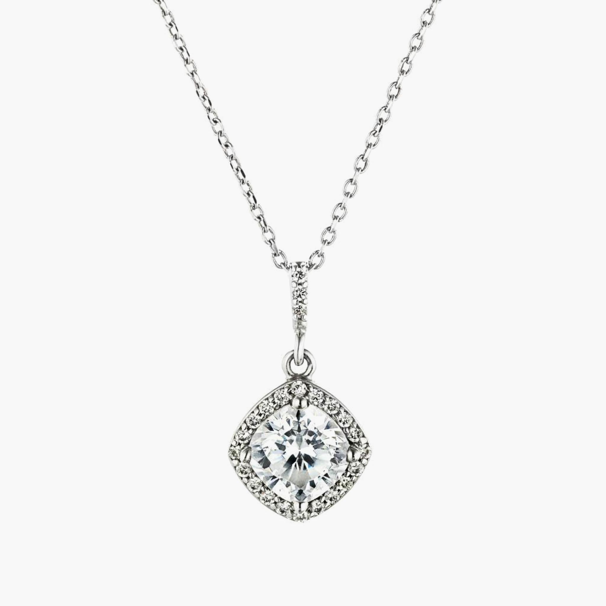 This Diamond Accented Antique Halo Pendant features a Cushion Cut set kite style, accented by a stunning halo of GHI/SI quality Lab Grown diamonds with an 18 inch chain.