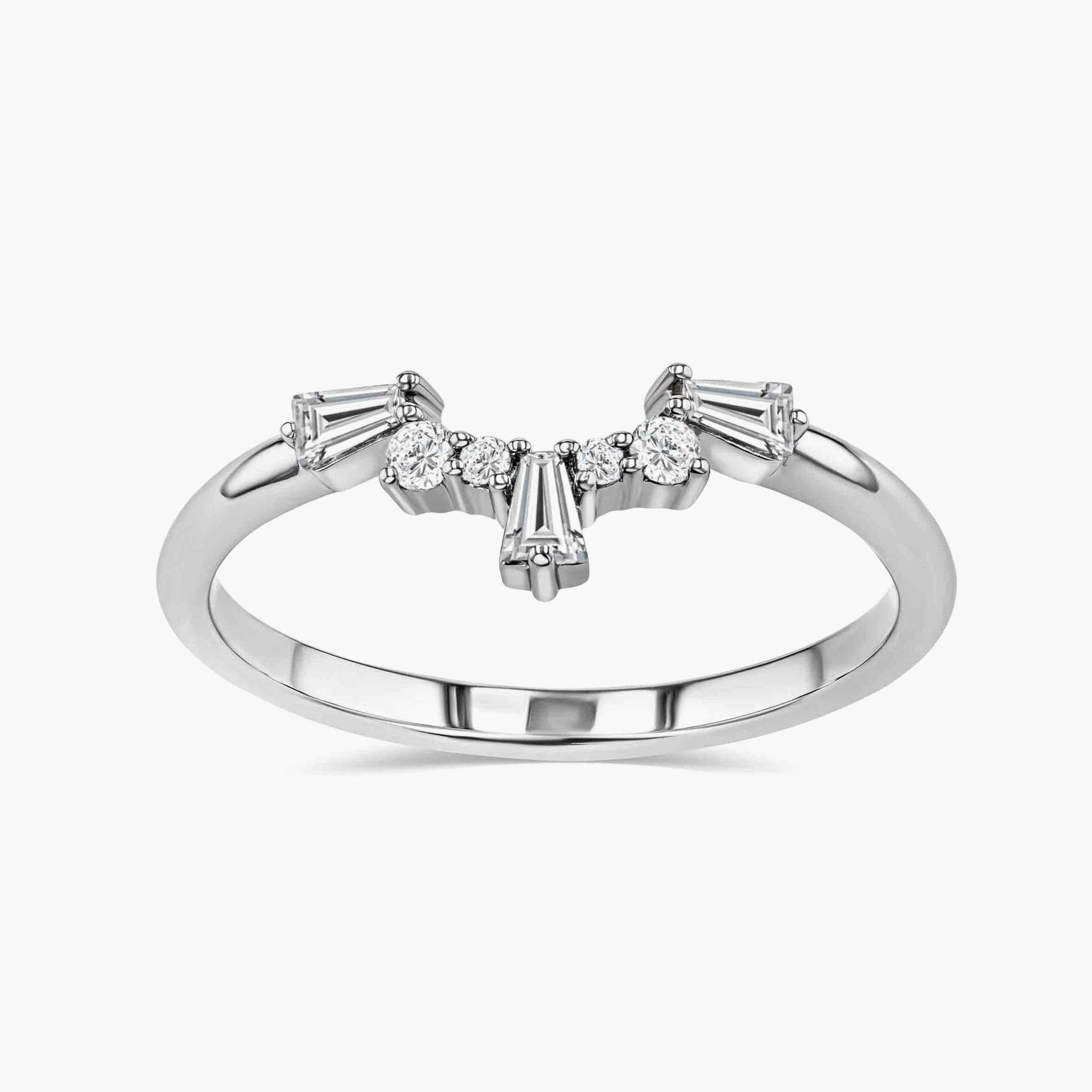 The Sunset Accented Wedding Band is beautifully accented with 0.20ctw of Lab Grown Diamonds, and contours to sit alongside a variety of engagement rings.