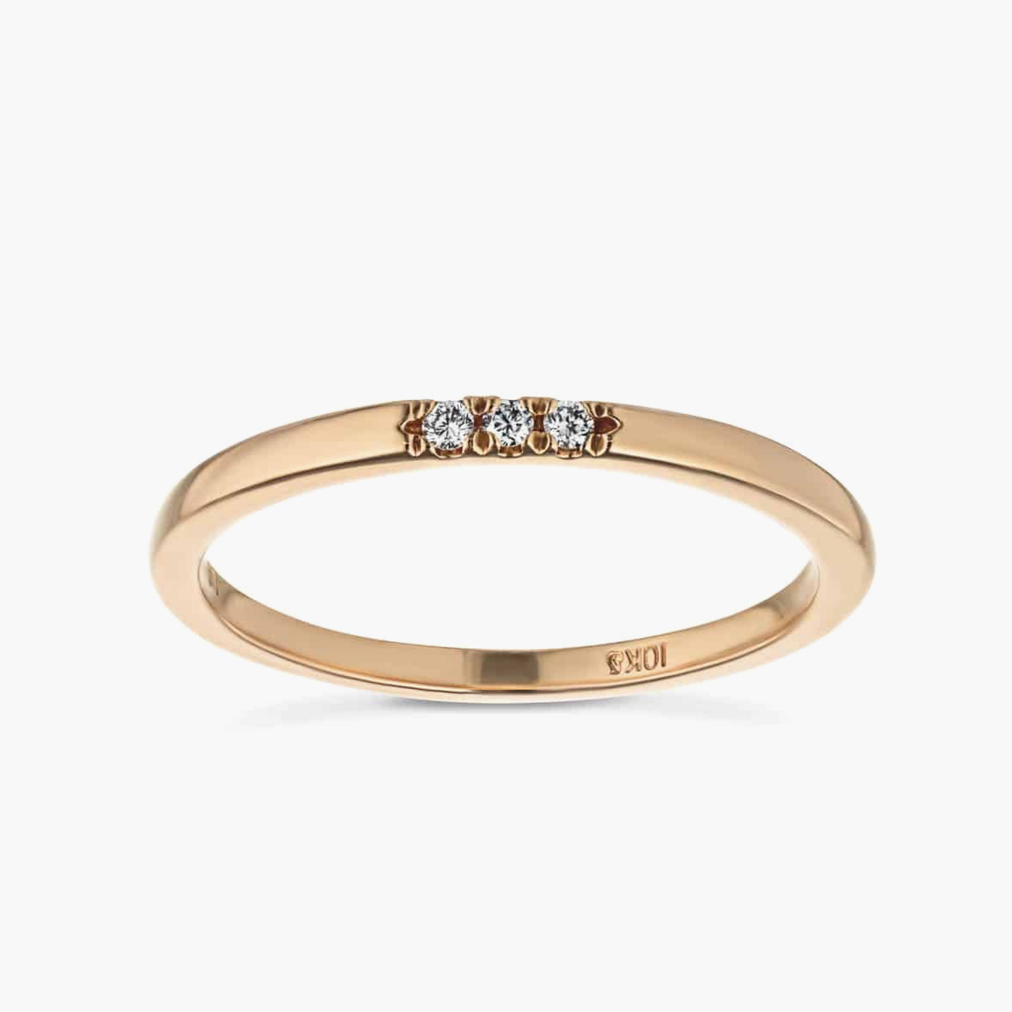 The Three Stone French-Set Band looks beautiful when worn alone or with multiple bands. This ring is delicate enough to be stacked with multiple rings without being too heavy. It is accented with 0.04ctw Lab Grown Diamonds.